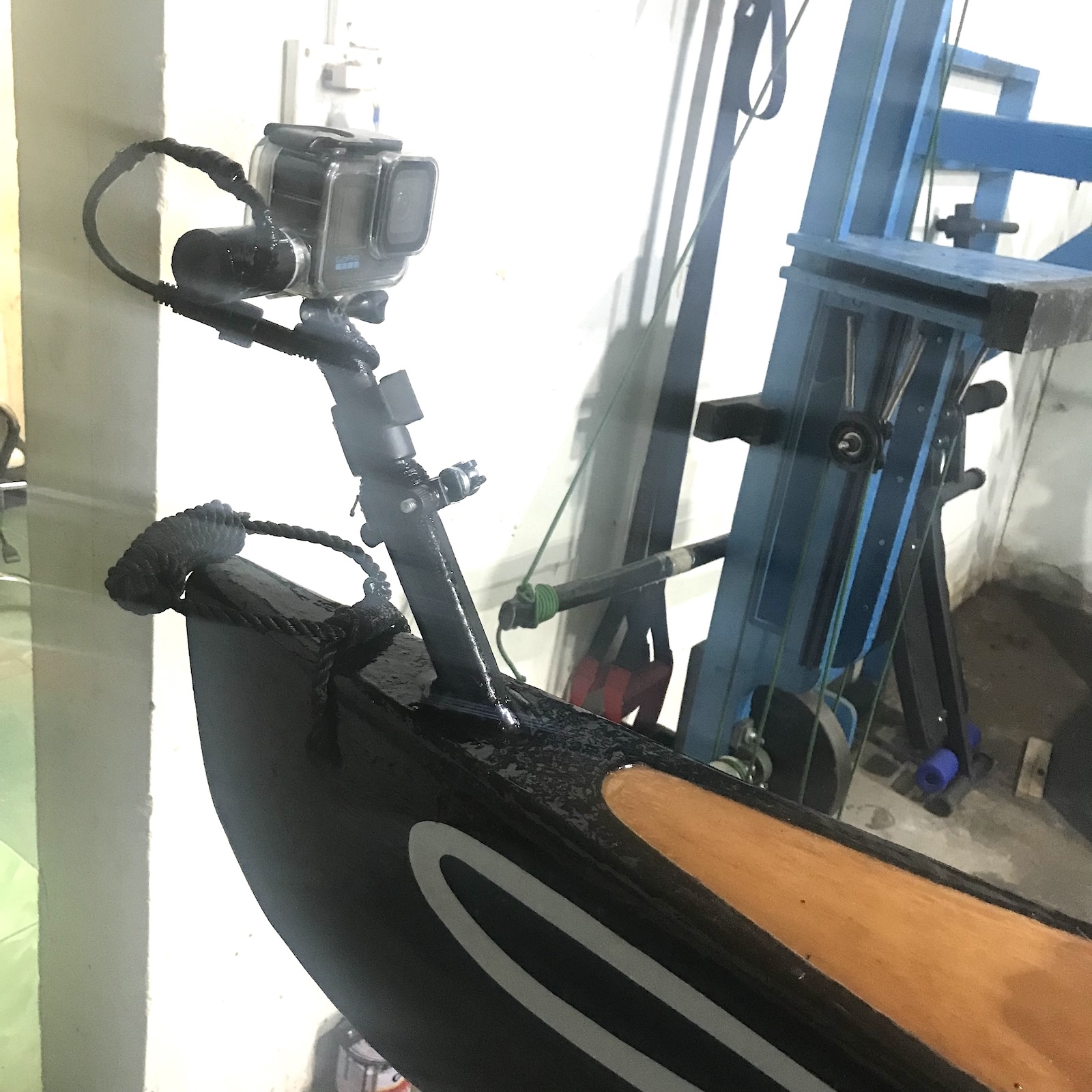 Một thời gian dài chỉ chèo những đoạn ngắn, không đi xa, không chụp ảnh quay phim gì! Hoàn tất nâng cấp chiếc xuồng, tháo 3 cái chân của giá máy ảnh – tripod, lắp vào 2 đầu xuồng. Đây là 2 cái chân hợp kim nhôm 3 khúc rất bền chắc! Khi rút gọn, có thể thu vào bên trong thân thuyền, khi kéo dài có thể lên đến hơn 1.6m. Đầu thuyền là một cái GoPro 13, đuôi thuyền là một cái Insta360 X4 + đèn tín hiệu, đều chống nước và đều cấp nguồn từ cục pin lớn bên trong xuồng, có thể quay liên tục đến vài chục giờ, dây điện chạy bên trong ống, bật công tắc từ là quay, cắt điện là dừng!